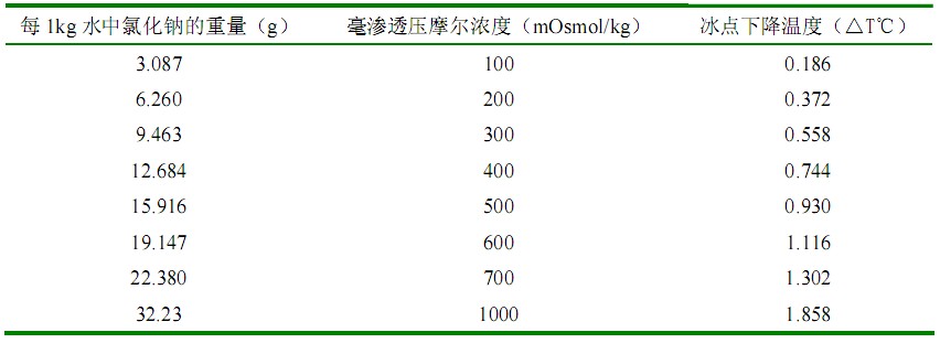 表 1 滲透壓摩爾濃度測定儀校正用標(biāo)準(zhǔn)溶液